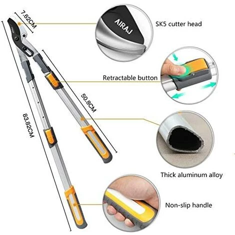 AIRAJ Ensemble De Cisailles à Haies, Coupe-haies Télescopiques De 84 Cm, Manuel De Cisailles à Haies De 61 Cm, Cisailles De Jardin Gratuites, Avec Lame Trempée, Pour La Conception De Jardin, Manuel De Cisailles à Haies De Jardin Professionnel