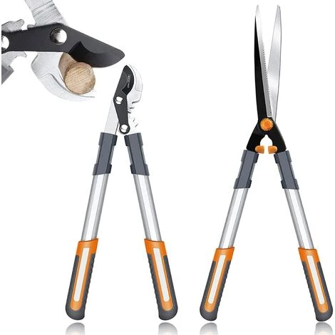 AIRAJ Lot De 2 Cisailles à Haies – Avec Cisailles à Haies De 61 Cm, Coupe-arbres De 48,3 Cm, Avec Poignées Antidérapantes Et Lames Tranchantes Comme Un Rasoir, Cisailles De Jardin 2 En 1 Et Coupe-branches.