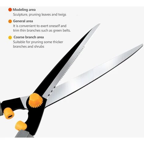 Détails professionnels : grâce à la lame dentelée spéciale, la force de morsure peut être considérablement augmentée lors de la coupe, empêche les branches de glisser hors des ciseaux et les performances de coupe des cisailles à haies de jardin peuvent être augmentées jusqu’à 50 %.