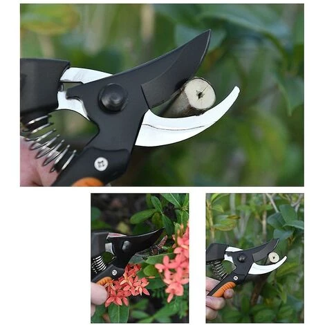Les sécateurs peuvent répondre aux besoins de plantation, de récolte, de fleurs, de plantation intérieure et extérieure et d’élagage en serre. Les ciseaux légèrement incurvés sont conçus de manière ergonomique et les ressorts amortisseurs intégrés exercent une pression sur les branches tout en coupant avec moins d’effort.