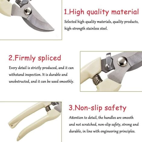 But: sécateur, utilisé pour récolter ou couper des herbes, des fleurs, des plantes d’intérieur, de la culture hydroponique, des bonsaïs, couper des tiges légères ou des brindilles ou d’autres besoins de coupe dans le jardin. Ce sera également le cadeau parfait pour les amis jardiniers.
