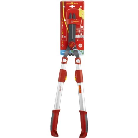 Cette cisaille à haies possède des manches télescopiques en aluminium anodisé ajustables de 75 cm à 95 cm. Les lames en acier trempé, légèrement incurvées, sont traitées anticorrosion et antiadhésives. Le diamètre de coupe de 12 mm est idéal pour tailler des buis et des petites haies. La molette de serrage permet notamment d’ajuster les lames facilement. Les butées antichoc et les tampons amortisseurs en caoutchouc réduiront les contrecoups de la taille.