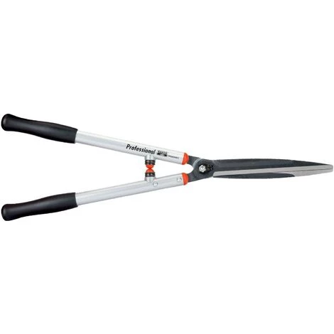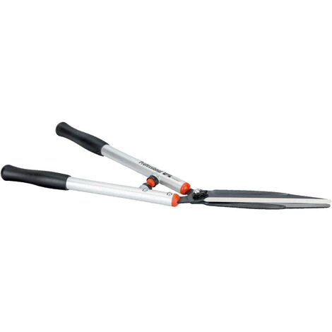 Cette cisaille à haies Bahco P54H-SL-25 est spécialement conçue pour l´usage professionnel en espaces verts, domaines viticoles et particulièrement pour l´art topiaire. Il dispose d’un long manche de 36cm en aluminium très légers, avec poignées plastiques confortables et butées absorbant les chocs pour moins de fatigue. Lames affûtées avec précision, entièrement trempées, garantissant une coupe régulière et efficace. Longueur totale 650mm et longueur de la lame 22.5cm Autres modèles de cisailles à haies Bahco disponibles en stock. Pièce de rechange disponible en stock. Garantie à vie Bahco.