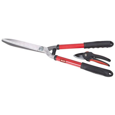 Set composé de sécateurs VALEX et de sécateurs modèle 1486284 composition: 2 pièces Données techniques – Cisailles à haies: longueur 550 mm, lame en acier poli durci 200 mm de long, poignées en métal et poignée antidérapante – Cisailles d’élagage: lames en acier trempé revêtu, poignée en polypropylène avec inserts en caoutchouc antidérapant, crochet de sécurité, capacité de coupe sur bois vert: 20mm – Idéal pour le jardinage et la taille