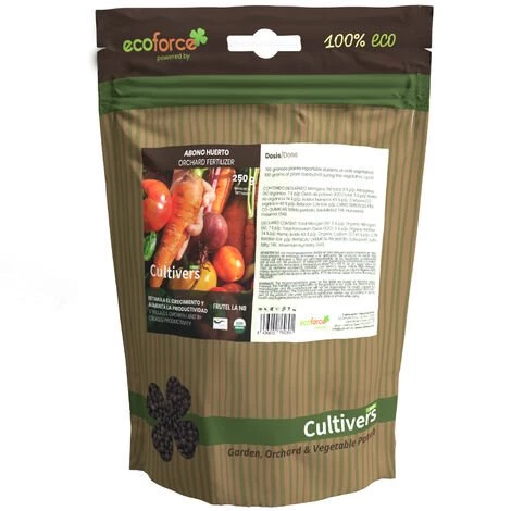 Engrais organique d’engrais organiques d’origine de l_gumes avec une formulation sp_ciale pour la culture du l_gume, fournissant les macronutriments et les _l_ments secondaires qu’il a besoin pour un d_veloppement normal. Il favorise la fructification fluide et abondante et renforce la r_sistance aux maladies. Contenu _lev_ de matires organiques et de substances hymicales, qui ont un effet b_n_fique sur les propri_t_s physiques, chimiques et biologiques, am_liorant le d_veloppement des racines de la plante et de l’absorption des nutriments. Pour une application au sol. Engrais d’azote. Forment des complexes stables de haute assimilation (fulvatos) qui favorisent l’absorption de calcium, de magn_sium, de phosphore, de micro_ltes, etc. Dans le mme temps, il am_liore la fertilit_ du sol, elle contribue š la contribution _quilibr_e des _l_ments principaux, am_liore l’a_ration et la r_tention de l’eau, r_duit l’effet de la salinit_ et favorise l’activit_ microbiologique. Caract_ristiques: Stimule la croissance et augmente la productivit_ de la culture de l_gumes. Dose: 100 grammes se propagent pendant le cycle v_g_tatif. Engrais _cologique sous la forme de microgranies de lib_ration lente et contr»l_e. Il renforce la r_sistance aux maladies. Am_liore le d_veloppement des racines de la plante et l’absorption des nutriments. Engrais organique _cologique avec NPK. Matire organique et micro_ltes. Produit 100% naturel et inoffensif pour les animaux et les plantes. Format: 250 gr