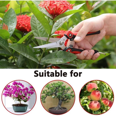 5. 【Faites des coupes précises】 La longue lame droite du sécateur peut facilement pénétrer dans l’espace étroit et couper les brindilles et les fruits attachés aux plantes sans aucun effort.Les ciseaux de jardin conviennent à la taille des fleurs mortes, des tiges d’arbres, des rosiers, des arbustes , petits plants, récolte de légumes.