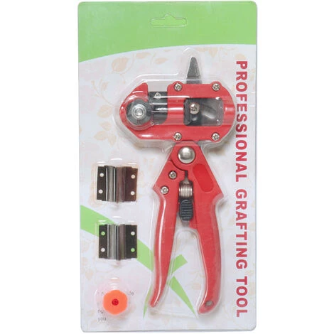 Paquet Contenu : 1 x Kit de pince à greffer,1 x un butoir de lame supplémentaire, 3 x lames de greffage (forme en U, forme en V et forme en Ω), 5 x greffage ruban
