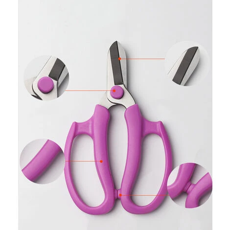 Matériau : ciseaux courts en nylon, la lame est en acier inoxydable à haute teneur en carbone, capuchon unilatéral, adapté pour un diamètre de branche de 10 mm.