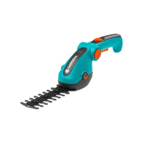 Contenu du kit : Cisaille à gazon sur batterie ComfortCut Li GARDENA, chargeur de batterie, protection de lames, lame taille-buissons (réf. : 9863).