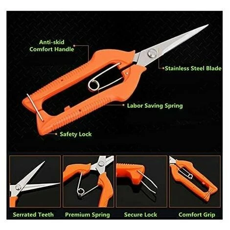 GroupM Cisailles à Cueillir Les Fruits Allongées Cisailles De Jardin Sécateur à Lame Droite Allongée En Acier Inoxydable