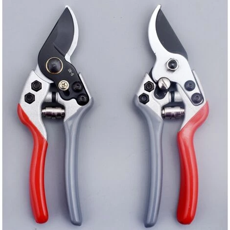 - Lame tranchante : les lames des ciseaux d’élagage sont en acier à haute teneur en carbone SK-5 et la surface est en alliage de zinc noir, ce qui peut prolonger la durée de vie du produit. Les lames en acier au carbone entièrement trempé resteront tranchantes même en cas d’utilisation prolongée.