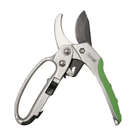 – Sécateur aluminium à crémaillère à contre lame crantée. – Lame en acier au carbone à revêtement spécial anti-rouille. – Contre lame crantée épaisseur 6 mm. – Blocage par cran de sureté. – Poignée de protection pour éviter les éraflures – Longueur 195 mm