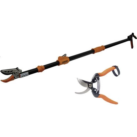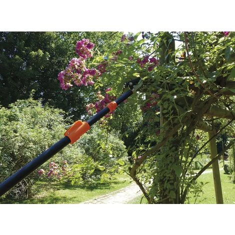 À utiliser sur les rosiers, les plantes épineuses et piquantes, les plantes grimpantes, les plantes d’étang et les roseaux ainsi que pour la cueillette des fruits. Pas d’enchevêtrement de cordes et de rubans comme c’est le cas avec les systèmes de tirage à corde habituels, grâce au système de tubes d’acier internes et donc protégés. Grâce au bras pivotant, les lames de la cisaille peuvent être tournées de 180°.
