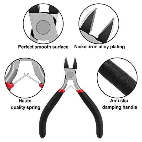 ✔ Matériaux de haute qualité : la pince coupante est fabriquée en acier au carbone de haute qualité, solide et tranchant, avec une structure en acier forgé et une longue durée de vie. C’est un bon outil pour couper facilement différents fils✔ Largement utilisé : très approprié pour les matériaux métalliques souples et fins, tels que les pieds électroniques, les produits en plastique, les fils métalliques, les bijoux, le bricolage, etc. Couper toutes sortes de fils jusqu’à 1,8 mm.✔Économie d’effort : pinces à ressort utilisées pour l’ouverture automatique pour créer un effet de levier et économiser de l’énergie pour vous donner un meilleur contrôle.✔Conception parfaite: poignée ergonomique en silicone antidérapante, opération confortable, sensation confortable, opération simple, adaptée pour couper le fil, le fil fin, etc.✔ Facile à transporter : il pèse environ 11,4 cm, est léger, ne prend pas beaucoup de place et est facile à transporter. Les cutters électroniques sont des outils de coupe idéaux pour les étudiants, les bijoutiers, les électriciens, etc.