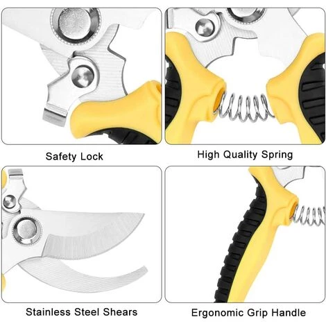 Entretien – Nettoyez toujours les lames de votre sécateur après utilisation, surtout si vous avez coupé des plantes à la sève résineuse qui endommagerait les lames. Assurez-vous qu’ils sont complètement secs avant de les ranger et conservez les sécateurs dans un endroit sec