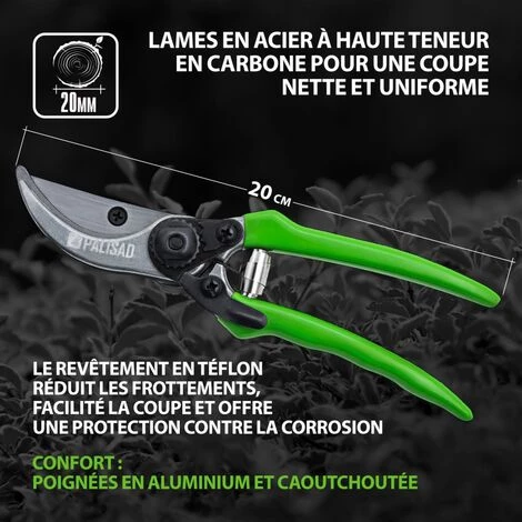 Ce sécateur PALISAD facilitera la coupe de vos plantes et branches de petites taille. Ses lames courbées et affutées permettent une coupe sans effort et préserveront vos plantes.Idéal pour l’entretien du jardin, des haies et arbustres.