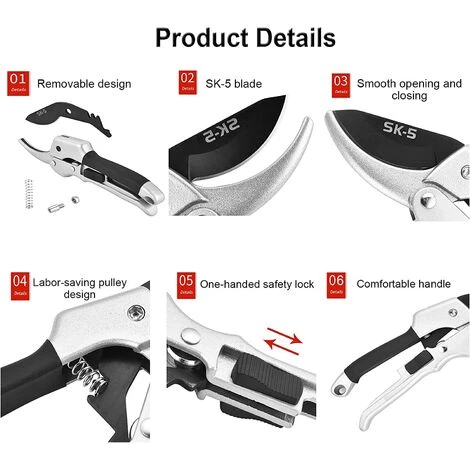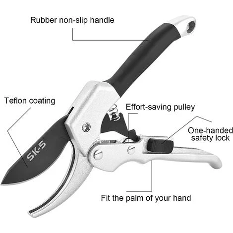 1.Ciseaux de jardin pour couper le feuillage, les vignes, les arbustes.