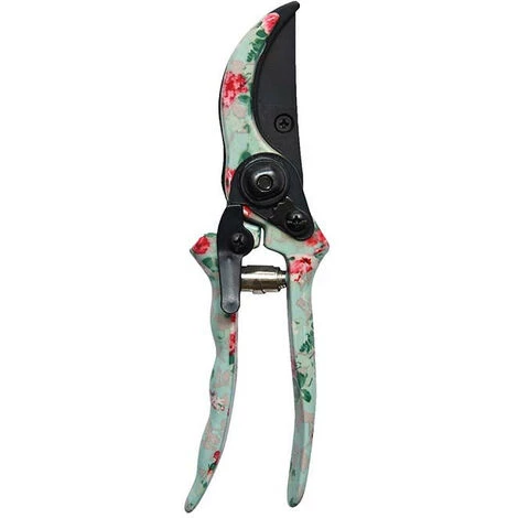 Jardinez avec élégance grâce à ce sécateur aux imprimés sympathiques et floraux ! Ce sécateur à imprimés roses convient à la taille des bourgeons, des fleurs et des fruits. Il dispose d’une poignée ergonomique et d’un système de verrouillage indispensable pour travailler en toute sécurité. L’ergonomie est très important, le sécateur doit être adapté à votre main pour être efficace et confortable. Conseils d’entretien : Nettoyer après utilisation pour conserver le produit dans le meilleur état possible. Vous pouvez retrouver différents accessoires de jardinage dans la même gamme imprimée roses sur notre site. Dimensions : 6,2 x 2,4 x 20,2 cm Matière : Acier doux, acier au carbone