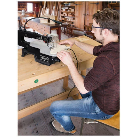 Pour sa gamme limitée, la Black Edition, SCHEPPACH offre un total look noir pour vos outils d’atelier et notamment lascie à chantourner SCHEPPACH – 90W – 400 mm – DECO-XL – Black Édition. Pour tout bricoleur ou modéliste, cette machine permet d’effectuer des découpes intérieures avec des détails très fins et confectionner des pièces parfaites. Que ce soit dans le bois, le plastique, le métal, le plexiglas ou le plâtre, le résultat est parfait même pour des contours complexes. L’éclairage procure une disposition de travail agréable lorsqu’il y’a peu de luminosité et la zone de travail reste propre grâce à la soufflette.