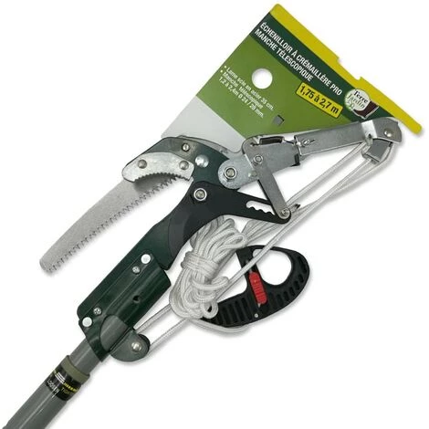 - Grâce à cet échenilloir à manche télescopique allant jusqu’à 2.40 mètres pour une longueur totale de 2.70 mètres, coupez toutes vos branches, même les plus hautes !