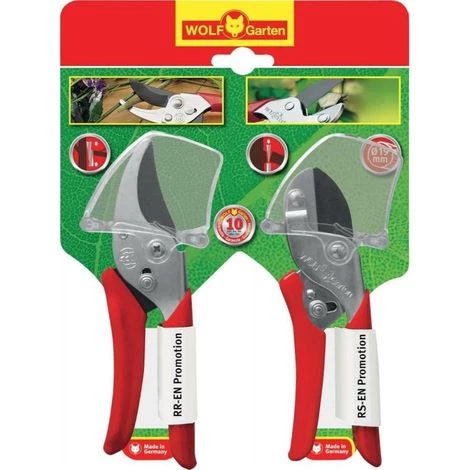 Set sécateur RR-EN + RS-EN • Ensemble composé de deux sécateurs robustes: 1 x sécateur bypass RR-EN 1 x sécateur à enclume RS-EN • Performance de coupe jusqu’à 19 mm • Avec enclume électrique pour une coupe facile (bois encore plus dur) • Coupe sans souche pour une cicatrisation plus rapide • Verrouillage d’une seule main • Convient aux utilisateurs gauchers et droitiers • Lame enduite antiadhésive et corps de ciseaux galvanisé