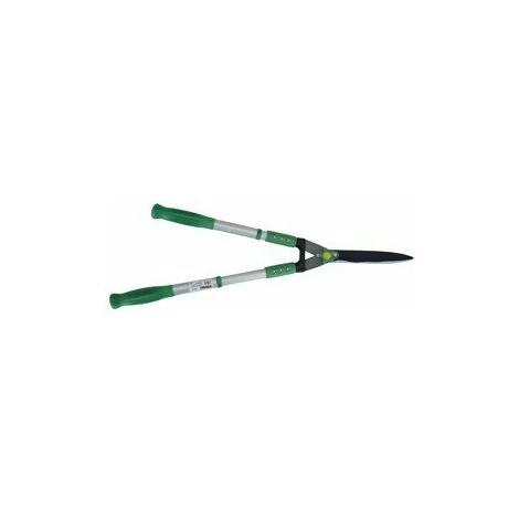 Forbici tagliasiepi 036WHLG, 2 mani. Grazie alla sua mango telescopica è ideal per tagliare siepi e cespugli alti e bassi. La lunghezza regolabile delle maniglie garantisce una portata ottimale. Prodotto leggero, comodo da usare. Design ergonomico. Foglia ondulata. – Metallo, alluminio, plastica. – Maniglie telescopiche di 69-85 cm. – Argento e verde. – 1,2 Kg. – Mango telescopico, foglie ondulate, manici in gomma antiscivolo. Con fermate di smorzamento.